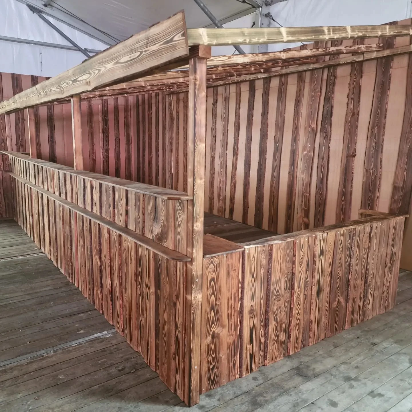 Eine ansprechende Zeltverkleidung aus Holz schafft eine warme und einladende Atmosphäre. Unsere individuell gestalteten Verkleidungen passen sich nahtlos an das Design Ihres Festzeltes an und bieten gleichzeitig Schutz und Stabilität.
